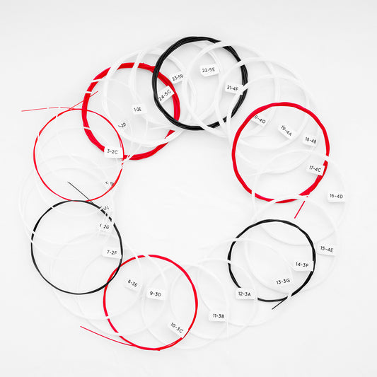 | Harp-E string # (from top) | Sipario Silkgut String # | Diameter (mm) |