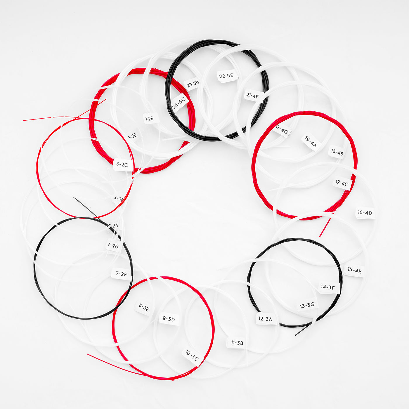 Harp·E was engineered for these strings. Using any other strings might result in difficulties with tuning and regulating.