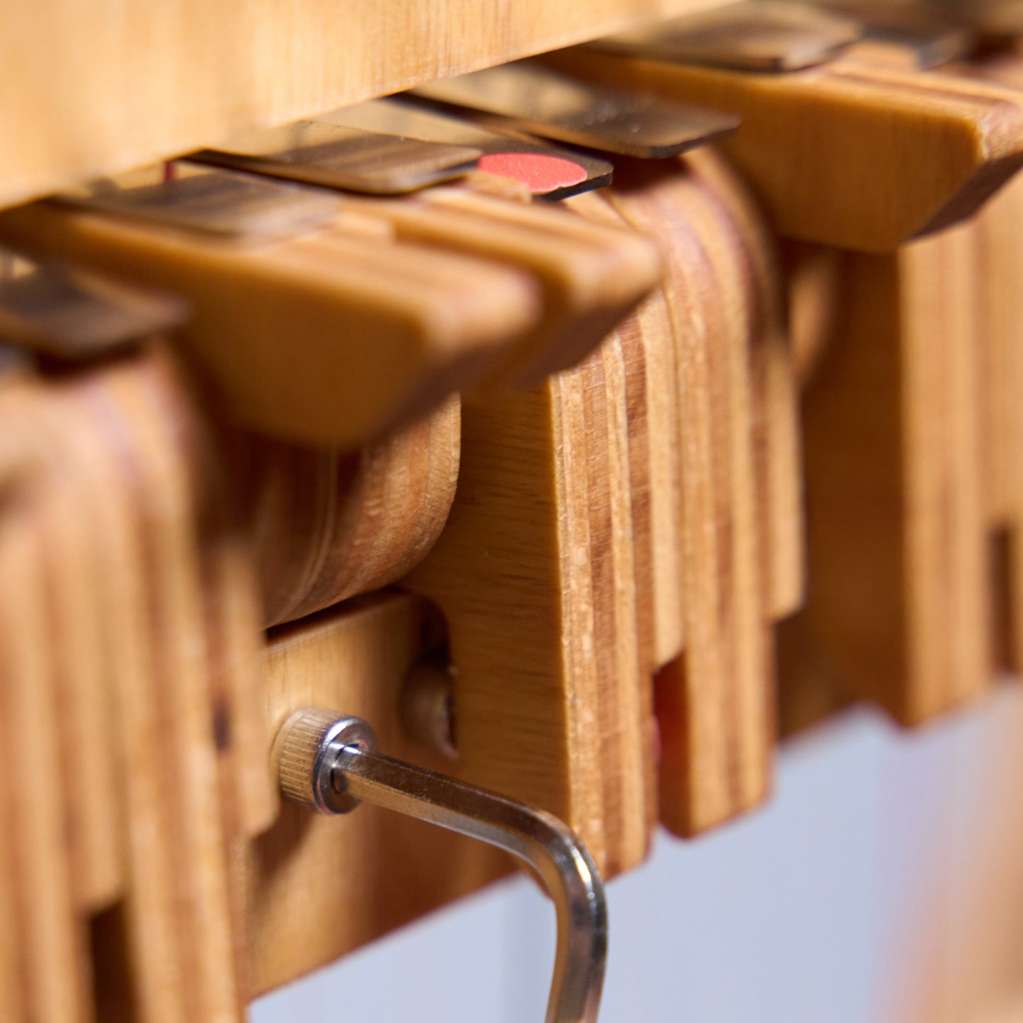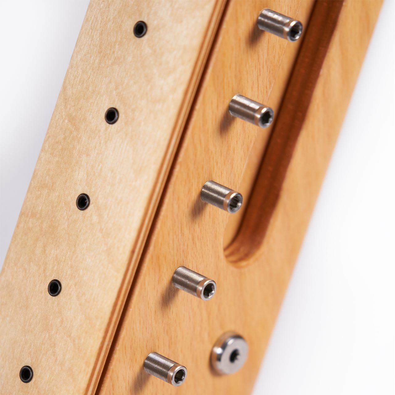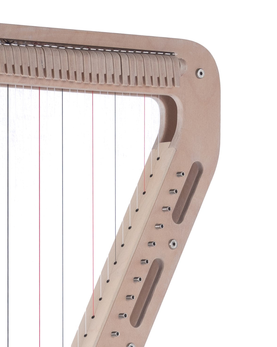 Regulation ensures the levers move the notes exactly a half step up or down. Typically handled by expensive technicians, Harp·E’s innovative construction allows you to do this step yourself, for free! Over the next few weeks after stringing, you’ll develop this invaluable skill as your harp settles.